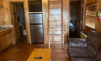 Cabin 11 at Tranquility Bay Resort includes: 1 Queen bed in private room, 1 loft with 2 full beds, 1 loft with full bed & twin bed. Sleeps 8.