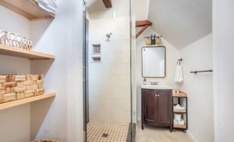 Guests have full access to the loft, including the adjoining bathroom, and office space. Guests also have access to the entryway of the building and front patio.