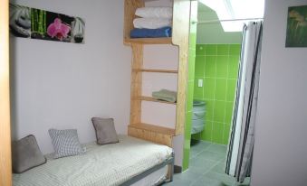 Located in a quiet and bucolic setting, this cottage offers a total area of over 200m2, with living room - living room open fully equipped kitchen and 10 rooms, each has 2 single beds (can form a double bed 160 * 200), a bathroom and a toilet.
