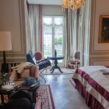 • Comfortable room: The rooms and suites are decorated with original paintings, antiques and crystal chandeliers, and are equipped with modern facilities such as flat-screen TVs, free Wi-Fi, minibars, etc. Some rooms also have balconies with beautiful views of the Salzach River and the old town.