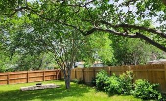 The backyard is great to relax in with lots of peace and quiet and a fire pit.
