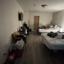 Location is superb just don’t go out late at night. Water could have been provided in the room. Lightning could be enhanced in the spacious room as well. Staff members and nice and efficient.