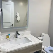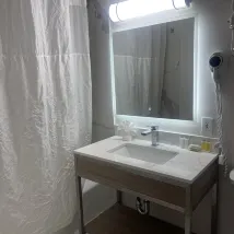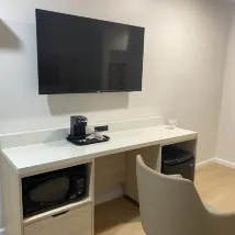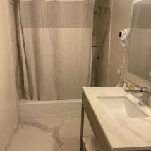The hotel is in a great location, with a microwave, coffee maker, free parking and an elevator. The room was very large, the bed was comfortable and there was a bathtub and hair dryer.