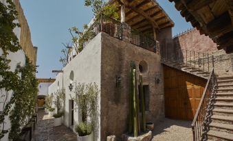 Perfect location near the Parroquia de San Miguel Arcángel. Very comfortable and clean accommodations. We got the Su Hermana, the largest room when we booked last minute (same day). The room is above street level so lots of steps to get there. Nice outdoor patio on the street side. We checked in on a Tuesday and so the night was quiet. The following night was noiser and we heard loud music from surrounding establishments until midnight. There are two double doors which also serve as windows. The wooden doors provided good light control except that the skylights let light in as soon as the sun rises. Not a big deal for us because we wanted to be up early. Just an observation for those who want to sleep in on holiday. The bed is comfortable and the sheets soft.