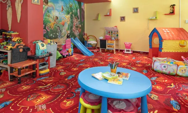 Had to spend one night along with group at Pirin Park. Booking was group booking so quite fast check in and rooms allotment. Basically it is a resort type property soy room was at ground floor near the swimming pool. Thought of swimming but it was very cold around 12 Dec C so could not dare to go swimming. Checked for Spa but informed needed prior appointment. we had a buffet dinner that was excellent with quality spread and taste . Liked the icecream counter where you can choose three flavours. So is true with breakfast that gives satisfying and tasty food. Interior is very beautiful with garden , children play area lash sofas. It was an excellent experience except they provided only one small water bottle and purchase price is quite high.