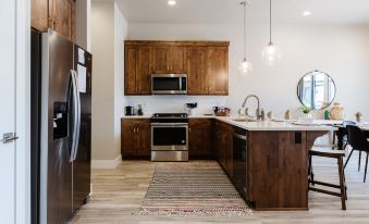 Southern Utah Adventure is a 3 bedroom / 4 bath modern home, that sleeps 10 guests comfortably, up to 12 guests with the help of additional bedding. Each room has its own private bath. With two common areas that have Smart Tv's, and smart tv's in two bedrooms; it gives you plenty of space for entertainment, game, or movie nights. Start your day off with a good workout in the private at home gym; equipped with weights, a squat rack, and a stationary bike. Then take off and take full advantage of all the adventure that surrounds you! Enjoy your evening grilling burgers out on the private back patio underneath the starry southern Utah sky.