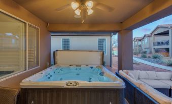 Spend your next southern Utah vacation in luxury at Anchors Away at Paradise Village Resort. This beautiful home is nestled in the heart of Santa Clara, with close access to Snow Canyon State Park, Tuacahn Center for the Arts, and countless other local wonders! Spend your days exploring the beauty of Zion National Park or splashing in the waves at Sand Hollow State Park. Come home to your own private hot tub and fire pit and relax under the stars. Challenge each other to matches on the Ping Pong Table or take the provided pickleball paddles to the court, just a few steps outside of the resort! As the day comes to a close, cozy up on the couch and watch one of the provided movies on the 70-inch TV in the living room. No matter what you enjoy, Anchors Away at Paradise Village Resort is sure to have something for you!