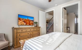 Inside, Sunset Haven combines comfort and entertainment, offering something for everyone. The home features spacious living areas and a fully-equipped kitchen, perfect for creating meals together. For those looking to unwind indoors, enjoy hours of fun with the provided Xbox 360, ping pong table, and air hockey table ideal for family game nights or friendly competitions. The extended back patio is perfect for outdoor dining, with a dedicated space for enjoying meals al fresco, along with a gas BBQ for grilling up your favorite dishes. If you re an avid cyclist, you'll love the nearby bike trails, which provide some of the best biking in the region, with stunning views around every turn. After a day of exploring, cool off with a refreshing swim in the nearby community pool, or relax in your own private backyard oasis. Whether hosting a large family gathering, a reunion, or just a special retreat with friends, Sunset Haven offers an abundance of space and amenities to ensure a memorable stay. Sunset Haven is the perfect blend of relaxation and adventure, offering stunning views, incredible outdoor activities, and all the amenities you need to feel right at home in the heart of Southern Utah.