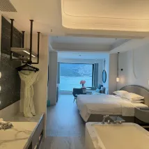 It is comparable to a five-star hotel, with floor-to-ceiling windows and sea views. The room consumables are very tasteful and high quality