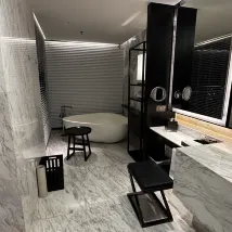 I recently stayed at this hotel and had a wonderful experience. The room was spacious and beautifully designed, with a semi-open bathroom that I especially loved.