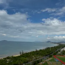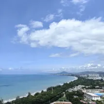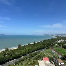 Our check-in coincided with Typhoon Jianyu making landfall in Sanya on August 24th. The lady at the front desk arranged an early check-in for us and even upgraded us to a full sea-view suite. The room was clean and tidy, offering an expansive view. The sea view was absolutely stunning; we could even see the ocean from the comfort of our bed in the bedroom. The room also came with sand-digging toys for children. Stepping out of the complex, there were numerous eateries and supermarkets downstairs, and the beach was just across the road. A special thank you goes to the lady at the front desk. When we checked out, the elevator was out of order due to the typhoon. She climbed the stairs to meet us and even helped carry a heavy 15 kg suitcase down from the 23rd floor – truly an incredible effort on her part. I would definitely recommend this place to friends.