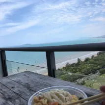 The spacious balcony with its incredible sea view was a perfect 10/10. We witnessed several stunning sunsets from there. A supermarket downstairs made it really convenient to cook simple meals ourselves. Nearby, you'll find great dining options such as 87 Fishing Boat, Coconut Chicken, Tiger Po Vanilla Duck, and Little Moustache Seafood. Ordering takeout was also a breeze, though you might need to head downstairs to collect your delivery yourself, as an access card is required for entry.