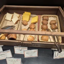 At the reception, there’s a small bar counter, and each guest gets a ¥300 drink credit to redeem for an alcoholic drink like red wine, white wine, or sake. There’s also a coffee machine, perfect for a quick caffeine fix before heading out.
