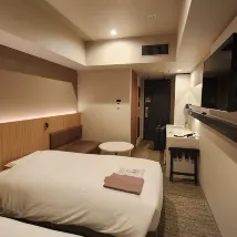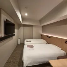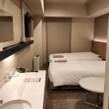 The twin room is a bit bigger than I expected as you can still open your luggage. I like the toilet and bathing are separate. Though the public bath is a bit crowded (small one) but a plus to the amenities. Also this is the only hotel I stayed this time with TV with YouTube and Netflix. Overall, I highly recommend!