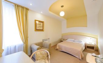 The hotel has 35 rooms, including 12 standard rooms, which are located on all floors, 15 Double rooms, 2 comfort rooms and 2 suites, they are located on the 5th and 6th floors, All rooms are decorated in the style of refined classics and equipped with everything necessary for your comfortable stay: air conditioning, Wi-FiWi-Fi, TV, refrigerator, hair dryer
