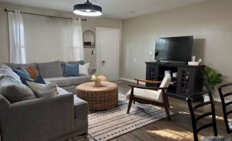 Relax on the oversized, comfy couch in the sitting area and take in the beauty of the majestic oak tree in the front yard. Whether you're chatting with family and friends or enjoying your favorite shows on the smart TV, which offers a wide range of cable channels and streaming platforms, there's something for everyone. If TV isn't your thing, dive into a variety of board and card games for endless fun and entertainment!