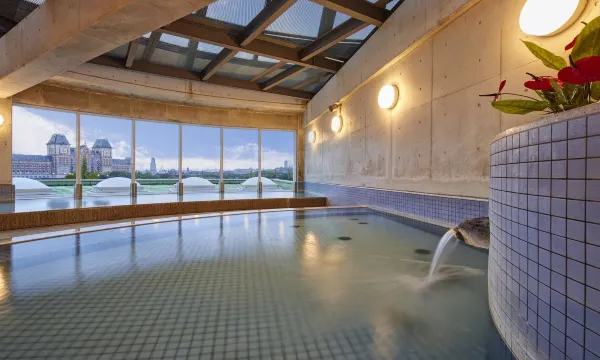 露天温泉可以看到ハウステンボス裏的摩天輪。