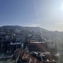 The room has a nice view of the city.