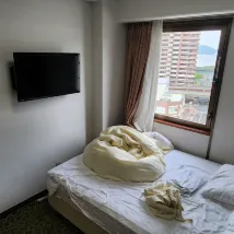 It was close to the station, clean, and comfortable. The bed was also comfortable.