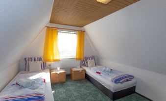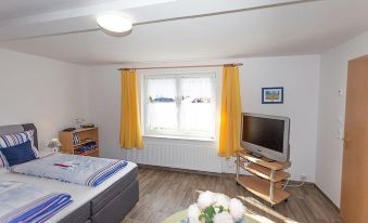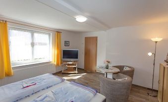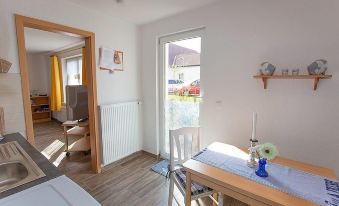 On the ground floor are the living room / bedroom (double bed), a separate kitchen with dining area and bathroom / toilet. The terrace is directly opposite the Hotel Schafshorn. The landlord provides a freezer and a fish cleaning place in his garden for anglers. A storage room for bicycles, bed linen and towels available, tea towels must be brought along. Outdoor seating and a barbecue area are also available. The distance to the beach is about 500 m. Shops and a restaurant are in town.
