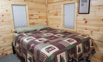 Cabin #2 is completely new including knotty pine, windows, black out blinds, carpet, bedding, plumbing and bathroom. We have city water and sewer!