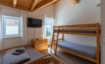 3 bedrooms: 1 bunk bed 1 queen bed and 2 double beds