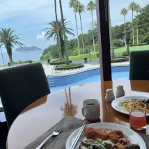 The hotel boasts a nice pool, and the breakfast spread was quite generous, even including my favorite yogurt, among other treats. They also offer sea-view rooms with stunning ocean vistas, providing a truly idyllic and refreshing experience. The complimentary, very large bottle of water provided by the hotel was a pleasant surprise.