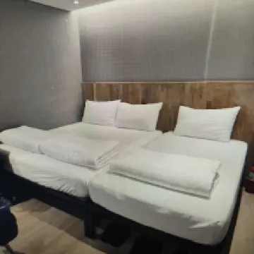 The location is fantastic, only a 7-10 minute walk from Hongdae Station, which made exploring super convenient. The room itself was a bit compact, and we could just about manage to open our luggage. However, despite the size, our overall stay was quite pleasant.