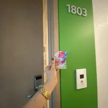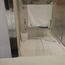 Towel is put next to the trash bin near the floor which is not hygiene. The water pressure in the bathroom facilities is unstable, often fluctuating, making it difficult to use. Additionally, the hair dryer’s cord is covered in hair from previous guests, indicating a need for improved hygiene. The staff's attitude is friendly, and the location is convenient with reasonable prices. However, the facilities are somewhat old, and hygiene conditions need improvement.