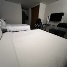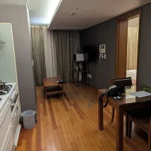 Room was worth for the price, big living room with two appropriate sized rooms, a kitchen and one toilet. Location was really close to myeongdong as well, around 10 minutes walk! The counter receptionists were friendly as well, I got no complaints at all. Overall, if you guys are coming in a family, this is a suitable hotel option for you all.