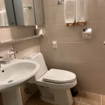 I was satisfied with the toilet, shower, sink and space.