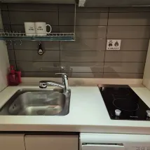 However, the room I stayed in was quite sad. It was so small that it was not possible to open my suitcase. The bed was very hard. The fridge was super loud, so I had to switch it off to have some sleep. There was a stove, but utensils had to be rented for a fee. There was a washing machine, but no detergent (you have to go ask at reception). No kettle (need to ask at reception). Of course, no tea/coffee as well. Microwave is in the corridor (shared). The shower didn't have any cabin or curtain, so after you use it, all the bathroom is wet and you can't use it until it dries or you wipe it with a towel. There's no cleaning unless you schedule it at reception. As a result, patrons put their rubbish outside their rooms and the corridor looks like a landfill in the morning.