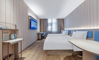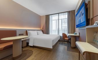 The hotel is located at 3885 Guangfulin Road, Songjiang, adjacent to Guangfulin country park, East China University of Political Science and Law, Donghua University, Shanghai Lixin College of Accounting and Finance. It faces Chenshan Botanical Garden, Sheshan National Tourist Resort, Shesshan Moon Lake Theme Park and Overseas Chinese Happy Valley. It is about 8 minutes' drive from Thames Town and 15 minutes' drive from the Old Town. It is close to Fangta Garden, Zuibai Pool, Xilin Temple and other tourist attractions. The hotel has novel and unique rooms, rooms with easy and bright colors, equipped with 55 inch big screen TV, support for screen casting, high-quality bedding, automatic temperature toilet and so on. High-tech equipment, to create 30 seconds to stay, robot delivery, 24-hour laundry, book lending and other 6 self-help experience, [free parking] for you to solve the magic of the hotel parking is difficult and expensive and other problems, Gao Yan efficient, is your choice for business travel.