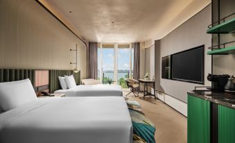 I have never written a review before but we had such an amazing stay at Hotel indigo i had to review it. The hotel itself was absolutely stunning, everything was so clean and luxurious. The location is perfect, right infront of dishui lake, you are able to watch the fireworks from the hotel balcony. The breakfast was delicious and had a diverse selection to choose from. Our first room was beautiful and had stunning views of the city but we we kindly upgraded to a lake veiw room which was even more beautiful. We were also offered complimentary breakfast. The staff at the hotel were helpful and super friendly even helping up to rent bikes throughout the day and night. I would like to specifically thank Claire one of the on duty managers who was so kind and very helpful with renting bikes, Angus who also rented us bikes and was so helpful with anything we needed and was always available for us to contact, his english was very good, this made communication very easy. And Carter who really went out of his way to help and make us feel welcomed.