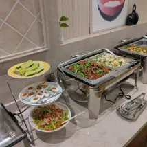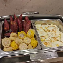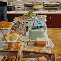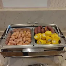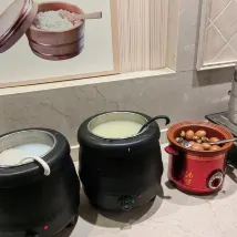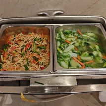 The breakfast is good with many varieties, including vegetable salad and you can cook your own wontons