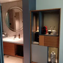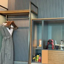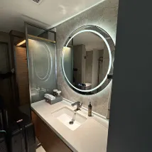 The hotel's facilities are quite new. However, the interior design had some functional shortcomings. For instance, the bathroom door's proximity to the toilet is awkward; a sliding door would have been much more practical. The placement of the washbasin mirror directly facing the bed is also problematic, as it can disrupt sleep, especially when the lights are on. Furthermore, the lighting design is overly complex, with switches scattered inconveniently throughout the room, making them cumbersome to use.