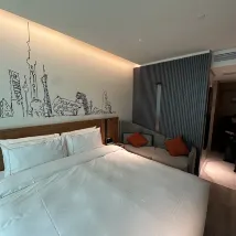The staff were really helpful with our requests and the free food and drinks provided in the lounge made the space really welcoming and hospitable. The rooms were clean and looked new. The location was just nice as we were walking distance from the train station with several malls around it. It was easy to get around and the hotel itself was easy to find. Overall a lovely stay for our first visit to Shanghai and we’ll definitely book here again.