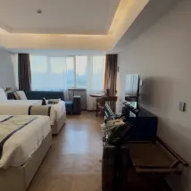 The amenities are quite extensive and modern, the location and view are also excellent, and they even assigned a 'private assistant' reachable on WeChat. However, there seem to be some serious management issues. The front desk was so understaffed that they couldn't cope with check-ins. Our room had a strong musty smell that even the air conditioning couldn't fix; every time we returned, the smell was noticeable, forcing us to open the windows for ventilation. The pillowcases had stains. We contacted them to get another pillow, but nothing happened for half an hour. We called again, only to be told by staff that they had run out of regular pillows and only had small throw pillows available. The assistant delivered breakfast, but despite being two guests, only one portion was sent. It was then we realized that while my companion's passport had been copied, it hadn't been properly registered to our room. After sorting out the issue, two portions of breakfast were finally sent. However, this still wasn't updated in their system, leading to confusion at the restaurant which couldn't confirm our entitlement.