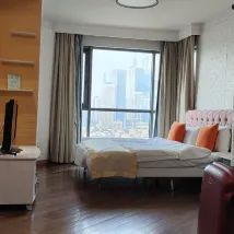 We went on May Day trip and it happened to be our baby's birthday. We paid extra to upgrade to a one-bedroom, two-living room suite at the front desk. The child was very happy and kept running around. The house was large and very comfortable to live in. There was a refrigerator in the house, so we didn't have to rush to eat the cakes we ordered. We ordered during the day and asked the staff to help deliver them to the room. We celebrated the birthday with our child at night. We will also consider looking for such a hotel apartment when we go to other cities next time. The price-performance ratio is too high.
