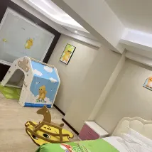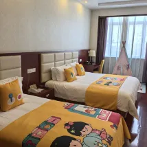 I booked a family room at Lu'an Garden Hotel through Ctrip a week in advance, requesting a room away from the elevator and in a corner. The hotel arranged it perfectly, and I was very satisfied. The room was larger than expected, comfortably accommodating three adults and one child. The hotel's kids' club was definitely my child's favorite spot – it was clean and had a good variety of activities. I was also very pleased with the room details: table corners had safety bumpers, and the walls, curtains, and slippers all had a cute Milk Dragon theme. They even provided a stroller, a rocking horse, and a tent. Auntie Zou Xiaoying from housekeeping was very diligent, responsible, and thoughtful; she kept the room incredibly clean and kindly hung a 'do not disturb' sign on the doorknob for us. Auntie Gong Shijie from the dining department had a warm smile and was very considerate. When we asked if we could pack some food for our child, who was still asleep because we had to rush for our train, Auntie Gong didn't hesitate and enthusiastically helped us get a takeaway bag. Overall, I was extremely satisfied; I just forgot to take many pictures of the hotel because I was busy with the kids, haha.