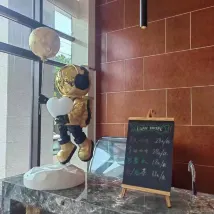 The breakfast was great and plentiful, and there's complimentary tea in the hotel lobby 🍵. The room was spacious, and the toiletries were excellent, even the slippers were thick and comfy ❤. They thoughtfully provided 'Baby Bus' themed toothbrushes for kids. The lobby staff were gentle and polite. There's a supermarket on the first floor, perfect for stocking up on snacks before heading to Disneyland. They also rent strollers and sell Disney merchandise. The hotel breakfast is extensive, and there are many small eateries within walking distance, making dining very convenient. I'll definitely stay here again next time. What impressed me most was the bedside charging outlets – a really thoughtful design. On the first day of our stay, we even received a complimentary fruit platter, which was a lovely touch.