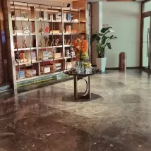 Upon entering the hotel lobby, one's eyes are immediately drawn to the gleaming, mirror-like marble floor, so brightly polished you can see your reflection, and utterly spotless. The front desk area is tastefully designed, simple yet elegant, with every decorative item and fixture immaculately arranged and dust-free. A subtle lavender fragrance fills the air, instantly creating a fresh, comforting atmosphere that melts away the weariness of travel.