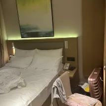 I've never seen a Ji Hotel quite this run-down. The TV was constantly out of order, and it took several attempts before they finally switched our room. What's more, there was blood on the pillow, the toilet flush was incredibly slow, and the hotel is quite a distance from the subway station. The staff, on the other hand, were decent.