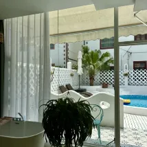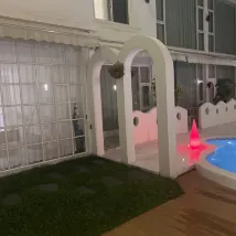 Twilight Pool-View Swing Bed Room With Large Screen Projection, Comfort Tub, Balcony, And Courtyard