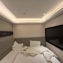 I was initially going to leave a negative review because the bed's headboard was really uncomfortable, and the smart toilet was malfunctioning (the lid kept closing on its own while I was using it). However, once I discovered the DIY coffee setup and admired the nice-looking kettle, all was forgiven.