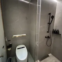 Amenities include self-service laundry, a book bar, and even late-night congee/porridge – a thoughtful touch for night owls. The room features a smart toilet (though its quality isn't great) and a simple, user-friendly shower. The hairdryer was good, too (couldn't tell if it was a Dyson).