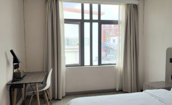 房間很大床很大,很便利,兩邊都有牀頭櫃,可以放包,商務極簡風,好幾個插座有配備吹風機,有兩瓶礦泉水,有鏡子。還有幾個質感很好的塑料衣架,還有空調。早上可以在樓下附近買早餐,也有零食店和超市,生活設施齊全。