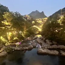 The ambiance was fantastic, with abundant dining choices close by. The prices were reasonable, and the food was delicious. The complimentary shuttle service to and from the scenic spots, provided by a dedicated driver, was a real standout! They drove us right to the pedestrian entrance and even picked us up when we arrived very late at night.