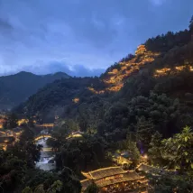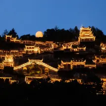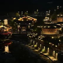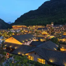 The room was spotless. It's conveniently located right at the entrance of the village. There are plenty of restaurants and late-night food options nearby, which is super convenient. They also offer Hanfu for guests, which is a lovely touch. Wàngxiān Valley is a must-see at night; the scenery is absolutely breathtaking!