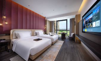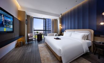 The hotel environment is very good. There is a shopping mall nearby. The lobby smells good. The room is clean and tidy. There are slippers in the room. Toiletries are complete. The staff is very enthusiastic. The bar on the first floor has cocktails to drink at night. The restaurant on the 11th floor has a buffet breakfast. The scenery is also very good. You can see the Cao‘e River. The overall experience of staying is very satisfactory.
